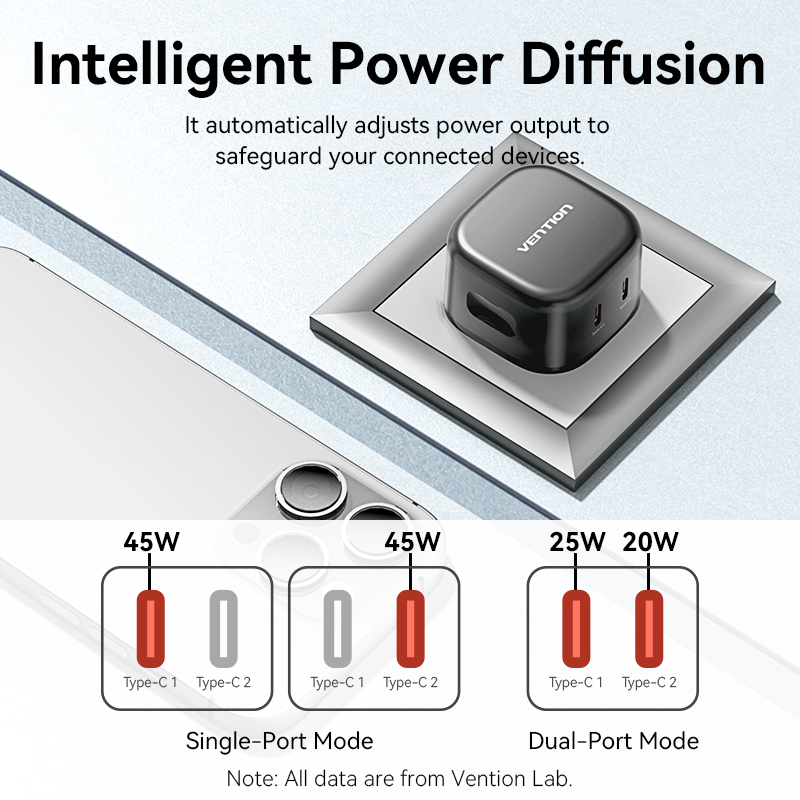 Vention Charger Wall GaN 45W 2xUSBC Black FESB0-UK
