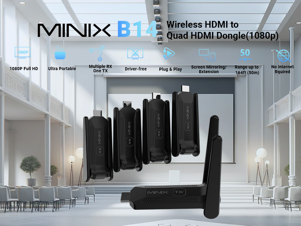 MINIX Wireless Display Adapter HDMI to Quad HDMI 1080p 50m NEO B14